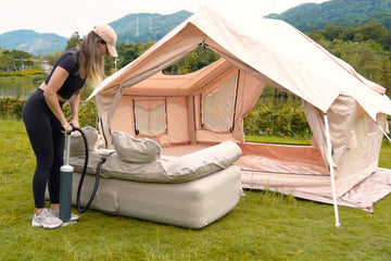 Équipé d'une pompe de gonflage intégrée qui peut être utilisée pour gonfler les chambres à air supérieure et inférieure, le canapé peut être gonflé et dégonflé rapidement en appuyant sur un bouton.